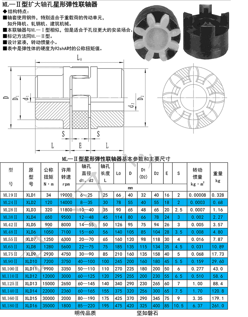 星形彈性聯(lián)軸器是由兩個(gè)帶凸爪形狀相同的半聯(lián)軸器和彈性元件組成,利用星形彈性元件置于兩半聯(lián)軸器凸爪之間,以實(shí)現(xiàn)兩半聯(lián)軸器的聯(lián)接。該聯(lián)軸器的結(jié)構(gòu)與梅花形彈性聯(lián)軸器基本相同,區(qū)別在于彈性元件的形狀分別是星形和梅花形,性能和梅花形彈性聯(lián)軸器相同,具有一定補(bǔ)償兩周相對(duì)偏移、減振、緩沖性能,徑向尺寸小、結(jié)構(gòu)簡(jiǎn)單、不用潤(rùn)滑承、載能力高,維護(hù)方便等特點(diǎn)。適于聯(lián)接兩同軸線,起動(dòng)頻繁,正反轉(zhuǎn)多變的傳動(dòng)軸系,傳遞轉(zhuǎn)矩20~25000N·m,工作環(huán)境溫度-35~80℃。