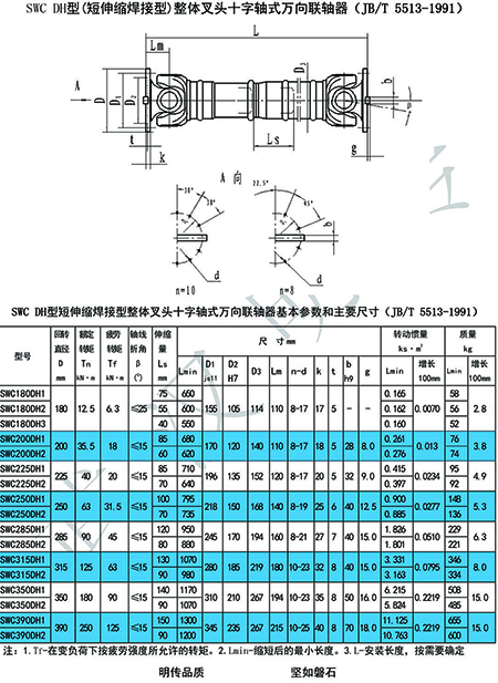 1.具有較大的角度補(bǔ)償能力,SWC型軸線折角可達(dá)15°~25°,SWP型可達(dá)10°。