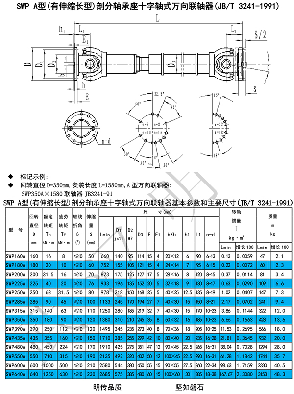 SWC型(整體叉頭)、SWP型(剖分軸承座)萬向聯(lián)軸器的主要特點: