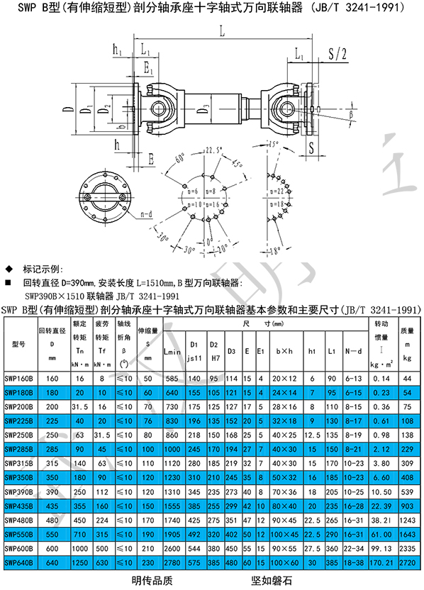 SWC型(整體叉頭)、SWP型(剖分軸承座)萬(wàn)向聯(lián)軸器的主要特點(diǎn):