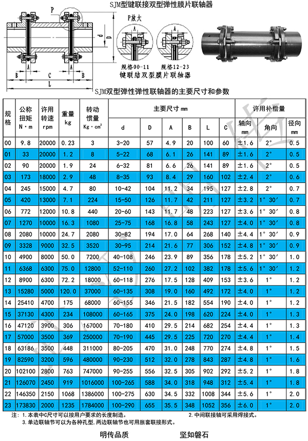 SJM型膜片聯(lián)軸器主要特點(diǎn):